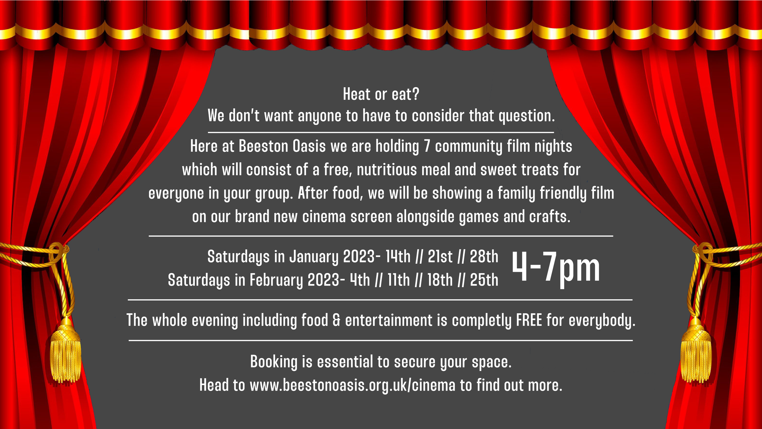 With inflation, utility prices, fuel prices and so on, many of us are feeling the pinch this winter. Here at Beeston Oasis we are opening up our building, putting the heating on, cooking some lovely home made food and setting up some entertainment to help take the strain. Come on your own, come with family or come with friends.